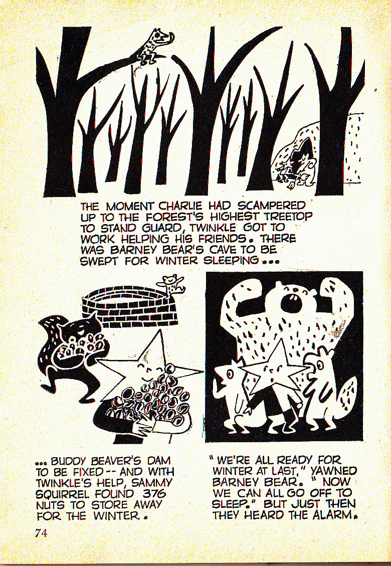 It wasn't until I did some research on Humpty Dumpty's Magazine alone that I saw the list of its features, which told me that the little chap I remembered so well as "Twinkle Loon" was actually... "Twinkle." Just "Twinkle." Well, technically, his feature was called "Twinkle, the Star Who Came Down from Heaven." (Not from the moon, Scott! I figured that Scott must have made up the rhyme himself, simply because it sounded good.) The Twinkle feature was (only occasionally) credited on the mag's contents page to children's book illustrator Jay Williams, but the strip itself was signed "Mazin." Were Mazin and Jay Williams the same guy? I haven't been able to find that out... yet.